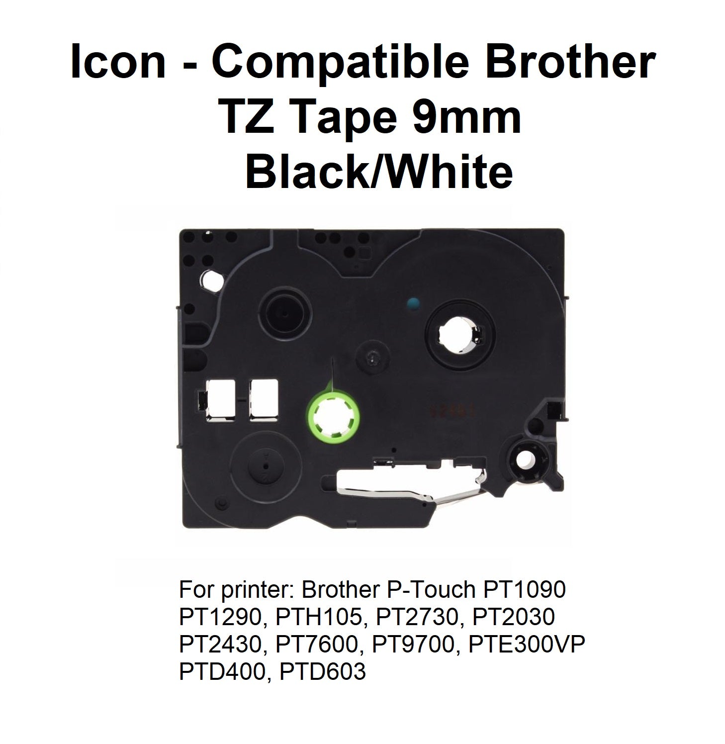 Black on White 9mm - Icon Compatible Brother TZ Tape
