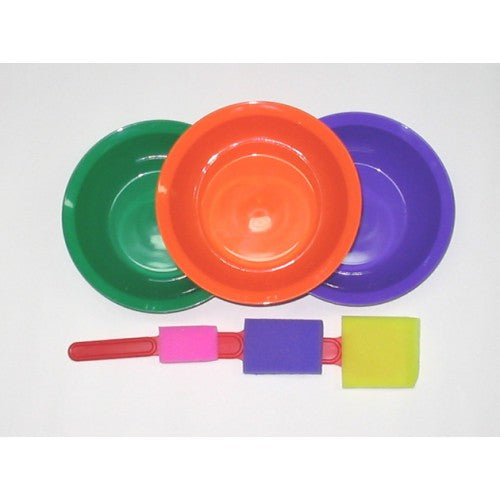 A Set of 3 Coloured Plastic Bowls With 3 Paint Dabbers For Dyes And Paint Use